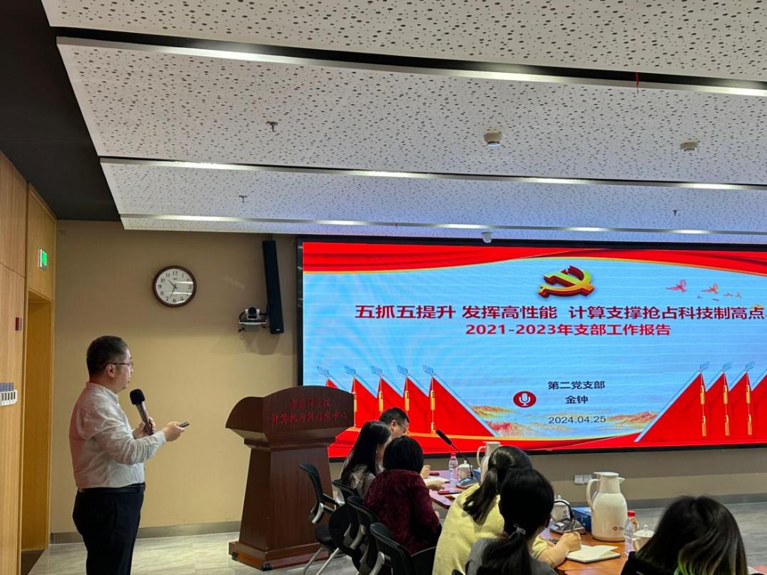 會議遵循《中國共產(chǎn)黨章程》《中國共產(chǎn)黨基層組織選舉工作條例》等相關(guān)規(guī)定,以及計算機網(wǎng)絡(luò)信息中心黨委工作要求。首先,支部書記金鐘代表上一屆黨支部委員作了2021-2023年支部工作報告,經(jīng)與會黨員審議,一致通過了該工作報告。隨后,會議進入支部委員換屆選舉議程。支部組織委員馬英晉宣讀《第二黨支部委員會換屆選舉辦法(草案)》以及新一屆支部委員會委員候選人建議名單。大會按照選舉辦法和規(guī)定程序,進行無記名投票,最終差額選舉出金鐘、李競、李瑞琳、和榮、徐順、劉揚為新一屆支部委員會委員。金鐘代表新當(dāng)選的支部委員發(fā)言,表示新一屆支委將切實履職盡責(zé),推動黨建和業(yè)務(wù)工作發(fā)展,團結(jié)帶領(lǐng)部門黨員同志和群眾,努力為高性能計算業(yè)務(wù)的發(fā)展貢獻力量。