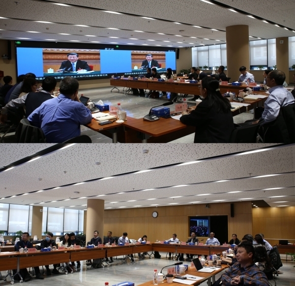 在參觀了中國科學(xué)院“東方”超級(jí)計(jì)算系統(tǒng)和聽取中國科技云、科學(xué)大數(shù)據(jù)等ECC監(jiān)控情況介紹后,與會(huì)人員一起學(xué)習(xí)了《習(xí)近平總書記在參加十四屆全國人大一次會(huì)議江蘇代表團(tuán)審議時(shí)的講話》,并交流了學(xué)習(xí)體會(huì)。