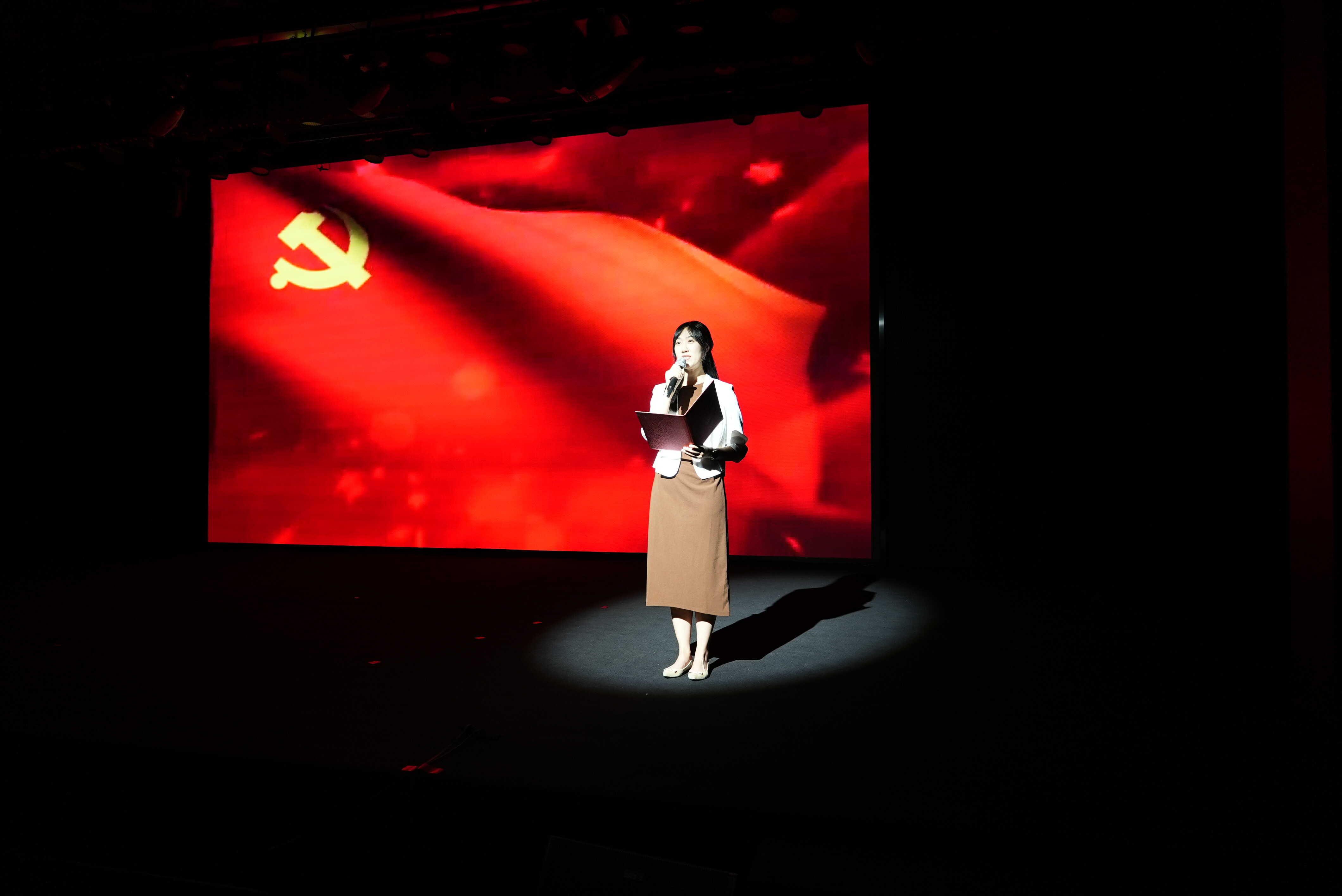 在莊嚴(yán)的國歌聲中,大會(huì)拉開帷幕。一堂別開生面的黨史課在音畫詩中開始了,領(lǐng)誦人王楊以飽含深情的語言,帶領(lǐng)大家回顧了黨的歷史。從1919年的五四運(yùn)動(dòng)到1921年7月在嘉興南湖的紅船上誕生的第一個(gè)綱領(lǐng),再到中國共產(chǎn)黨這個(gè)紅彤彤的名字開啟了中國革命的新紀(jì)元,歷史的篇章一幕幕在眼前展開。講述人楊植在音樂中娓娓道來,講訴了一代又一代的中華兒女在黨旗下集結(jié),誓把新時(shí)代的旋律奏響,中國青年必以“青春之我”響應(yīng)“青春中國”?!耙患埿殴{寄初心”視頻片記錄了新黨員同志們的成長心路和入黨初心。在中心黨委書記孫德剛的帶領(lǐng)下,新黨員進(jìn)行入黨宣誓,全體黨員重溫入黨誓詞。