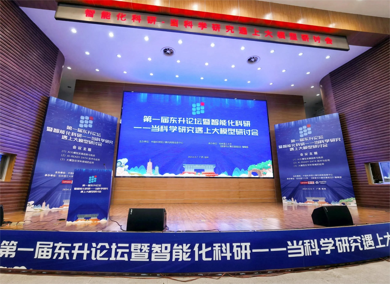 ????隨著大模型的加速發(fā)展,各領(lǐng)域科研團隊正積極探索大模型在科研活動中的應(yīng)用。為促進以人工智能為代表的信息技術(shù)與各領(lǐng)域科研的融合、促進不同領(lǐng)域應(yīng)用場景的交互交流,由中國科學(xué)院計算機網(wǎng)絡(luò)信息中心主辦,桂林理工大學(xué)、《數(shù)據(jù)與計算發(fā)展前沿(中英文)》編輯部共同承辦的第一屆“東升論壇”暨“智能化科研——當(dāng)科學(xué)研究遇上大模型”研討會于2024年6月6-7日在廣西桂林召開,希望籍此能夠推動智能化信息化與各學(xué)科領(lǐng)域的廣泛交叉與深度融合。