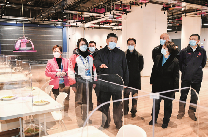 2022年1月4日,中共中央總書記、國家主席、中央軍委主席習(xí)近平在北京考察2022年冬奧會(huì)、冬殘奧會(huì)籌辦備賽工作。圖為1月4日上午,習(xí)近平在北京冬奧會(huì)、冬殘奧會(huì)主媒體中心智慧餐廳,察看智能餐飲設(shè)備運(yùn)行情況。圖/新華社記者 謝環(huán)馳 攝