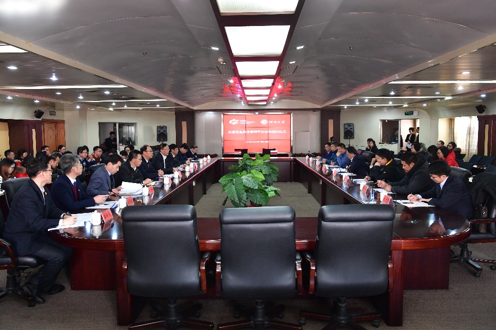 1月14日,計算機網(wǎng)絡信息中心與河北大學在保定河北大學校區(qū)簽署儀器設備共享管理平臺合作協(xié)議。河北大學校長康樂院士、黨委常委、副校長陳紅軍,黨委常委、副校長孟慶瑜和中心主任廖方宇、副主任謝高崗,以及院條財局相關(guān)處室領(lǐng)導等出席了簽約儀式。