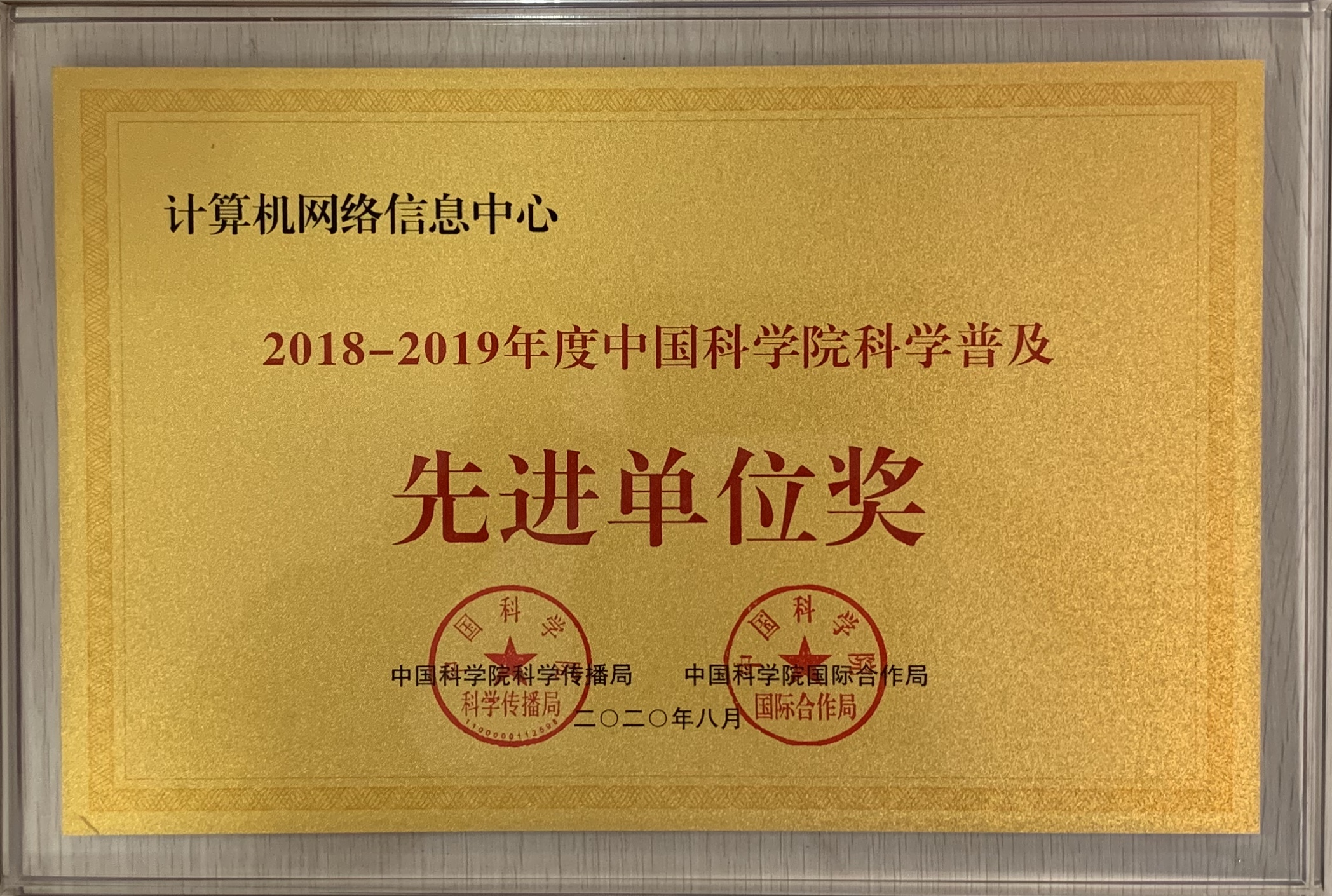 計算機網(wǎng)絡(luò)信息中心榮獲2018-2019年度“中國科學(xué)院科學(xué)傳播先進單位獎”和“中國科學(xué)院科學(xué)普及先進單位獎”
