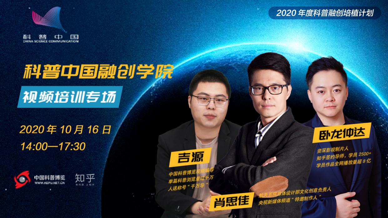 “科普中國·融創(chuàng)學(xué)院”第三期視頻創(chuàng)作培訓(xùn)專場(chǎng),邀請(qǐng)了三位在科普視頻創(chuàng)作領(lǐng)域頗有建樹的嘉賓,分享他們的經(jīng)驗(yàn)。本期活動(dòng)聯(lián)合知乎平臺(tái)共同開展,并在中國科普博覽知乎機(jī)構(gòu)號(hào)全程直播。
