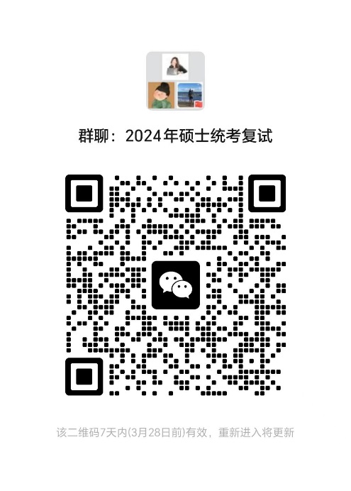 為便于考生咨詢,請(qǐng)進(jìn)入復(fù)試的考生掃描下方二維碼加入微信群,入群后及時(shí)將昵稱改為“考生編號(hào)后三位+姓名+學(xué)術(shù)型/專業(yè)型”,并注意及時(shí)查收郵件及中心碩士統(tǒng)考復(fù)試微信群消息,以便于接收后續(xù)相關(guān)通知。