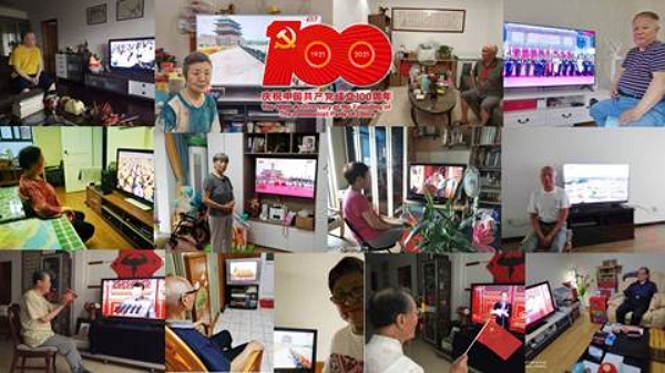 老同志在家收看直播