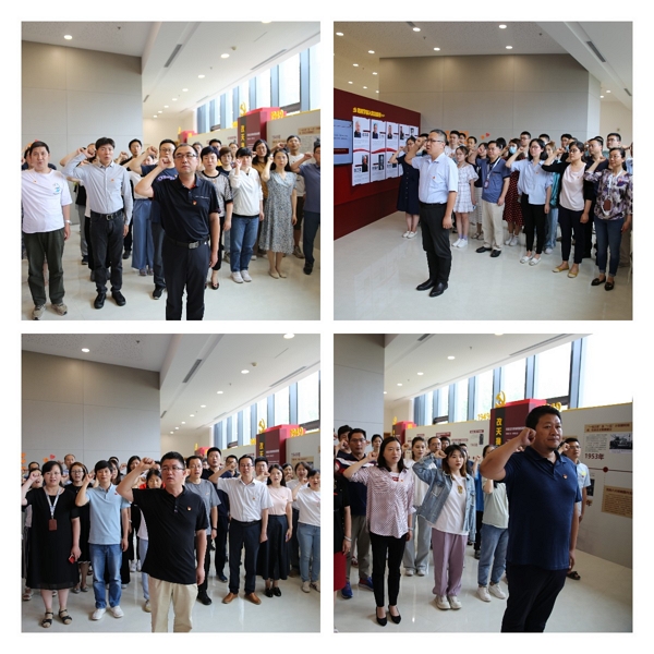 慶祝大會(huì)結(jié)束后,各黨支部組織了重溫入黨誓詞活動(dòng)。在領(lǐng)誓人的帶領(lǐng)下,全體黨員面對(duì)黨旗,重溫入黨誓詞,重憶入黨初心,禮贊黨的豐功偉績(jī),為黨的百年華誕獻(xiàn)禮?!拔抑驹讣尤胫袊伯a(chǎn)黨,擁護(hù)黨的綱領(lǐng),遵守黨的章程......隨時(shí)準(zhǔn)備為黨和人民犧牲一切,永不叛黨?!辩H鏘有力的宣誓聲久久回蕩,表達(dá)了全體黨員對(duì)黨的無限忠誠、熱愛和感黨恩、聽黨話、跟黨走的堅(jiān)定決心。