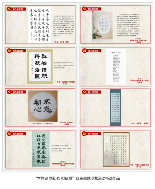 本次活動從策劃、籌備到制作、審核歷時一個多月,十一個支部踴躍報送展現(xiàn)革命歷史、紅色文化的繪畫、書法、詩歌、歌曲、誦讀等作品共計50余部。這些作品以不同的形式謳歌了黨的豐功偉績,表達了對黨的無限熱愛,為大家呈現(xiàn)了一場紅色文化藝術(shù)盛宴。