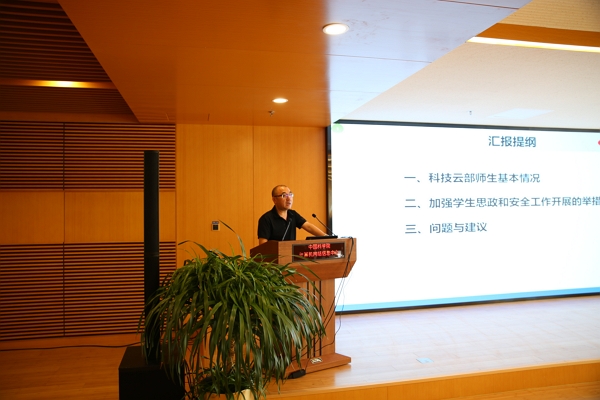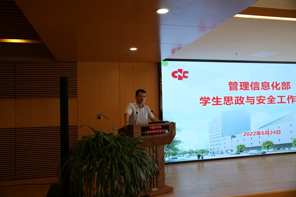 會上,人事教育處處長喬建偉詳細解讀了院相關規(guī)章制度與中心實施細則,并就貫徹落實提出了意見建議。科技云發(fā)展部主任黎建輝、管理信息化部副主任于建軍作典型發(fā)言,重點匯報了本部門學生思政與安全工作的思路舉措、特色工作以及存在的問題與意見建議。研究生教育辦公室孫芙寧介紹了第二季度學生思政與安全方面的重點工作。