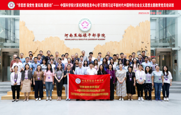 為進(jìn)一步深入學(xué)習(xí)貫徹習(xí)近平新時(shí)代中國特色社會(huì)主義思想和黨的二十大精神,持續(xù)推動(dòng)主題教育走深走實(shí),8月23日至25日,中國科學(xué)院計(jì)算機(jī)網(wǎng)絡(luò)信息中心在河南焦裕祿干部學(xué)院舉辦舉辦“學(xué)思想 強(qiáng)黨性 重實(shí)踐 建新功”學(xué)習(xí)貫徹習(xí)近平新時(shí)代中國特色社會(huì)主義思想主題教育黨員培訓(xùn)班,中心共62名黨員參加培訓(xùn)。