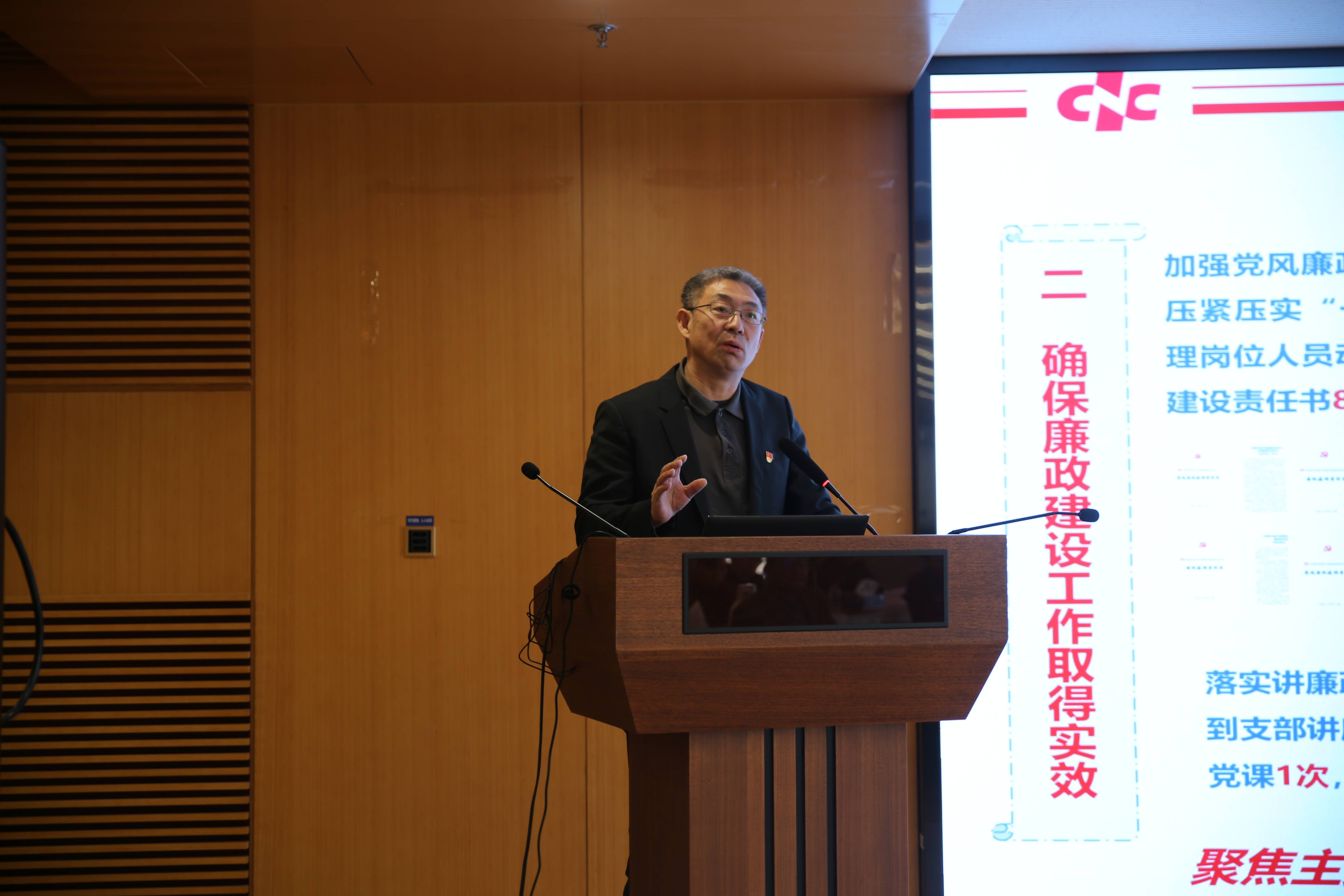 黨委書記孫德剛以《聚焦布局 重塑隊(duì)伍 提升效能》為題作中心黨建工作報(bào)告暨述職報(bào)告,從著力強(qiáng)化黨的政治建設(shè)、思想建設(shè)引領(lǐng)、人才隊(duì)伍建設(shè)、基層組織建設(shè)、全面從嚴(yán)治黨、群團(tuán)組織建設(shè)六個(gè)方面全面總結(jié)中心2023年整體黨建工作,分析存在的問題,提出下一年度工作計(jì)劃。紀(jì)委書記藺占兵作2023年紀(jì)委工作匯報(bào)暨述職報(bào)告,并進(jìn)行了警示教育。