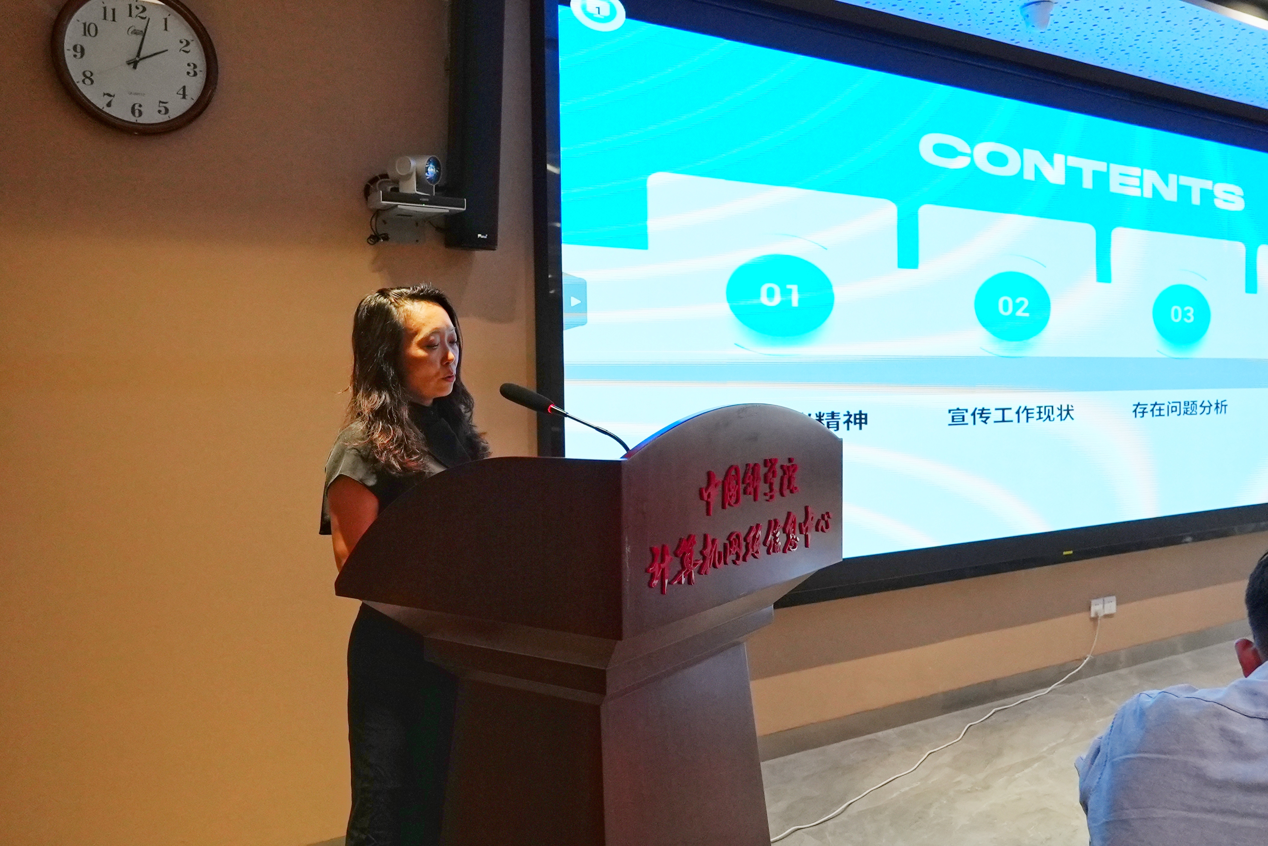 孫健英以《構建“一盤棋”工作格局 提升宣傳工作質(zhì)效》為題作報告,她傳達了中國科學院信息宣傳工作推進會議精神,并從中心宣傳工作現(xiàn)狀、存在問題分析和后續(xù)工作考慮三個方面詳細介紹了中心年度宣傳工作情況。中國科學院理化所朱世慧結(jié)合理化所在信息宣傳方面的實踐與探索,分享了成功經(jīng)驗和創(chuàng)新做法。中心科學新聞部任霄鵬從特色主題策劃、重要節(jié)點宣傳、新聞稿件的撰寫等方面,詳細講解了新聞宣傳工作的實踐與思考。會議還圍繞中心宣傳工作中的常見問題,進行了針對性的培訓。