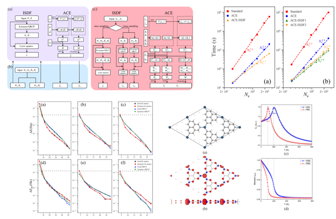 我中心運(yùn)行與應(yīng)用服務(wù)室對(duì)中國(guó)科學(xué)技術(shù)大學(xué)合肥微尺度物質(zhì)科學(xué)國(guó)家研究中心團(tuán)隊(duì)進(jìn)行了持續(xù)的技術(shù)支持,保障用戶在“東方”超級(jí)計(jì)算系統(tǒng)上進(jìn)行算法的創(chuàng)新與擴(kuò)展?;诜窍拗坪头枪簿€自旋 KS-DFT中的雜化泛函提出了兩種新的 ACE-ISDF 算法,適合研究大規(guī)模體系的自旋電子結(jié)構(gòu),并已集成到用戶團(tuán)隊(duì)開發(fā)的第一性原理高性能并行計(jì)算軟件KSSOLV中。與標(biāo)準(zhǔn)方法相比,ACE-ISDF 算法在保持高精度的同時(shí),實(shí)現(xiàn)了兩個(gè)數(shù)量級(jí)的加速,保證了 SCF 過(guò)程的收斂性,并且加速比隨著體系規(guī)模的增加而增加。計(jì)算結(jié)果表明,與局域和半局域泛函相比,自旋 DFT 中的雜化泛函計(jì)算不僅可以得到準(zhǔn)確的電子結(jié)構(gòu),還可以獲得準(zhǔn)確的鐵磁半導(dǎo)體磁序溫度。