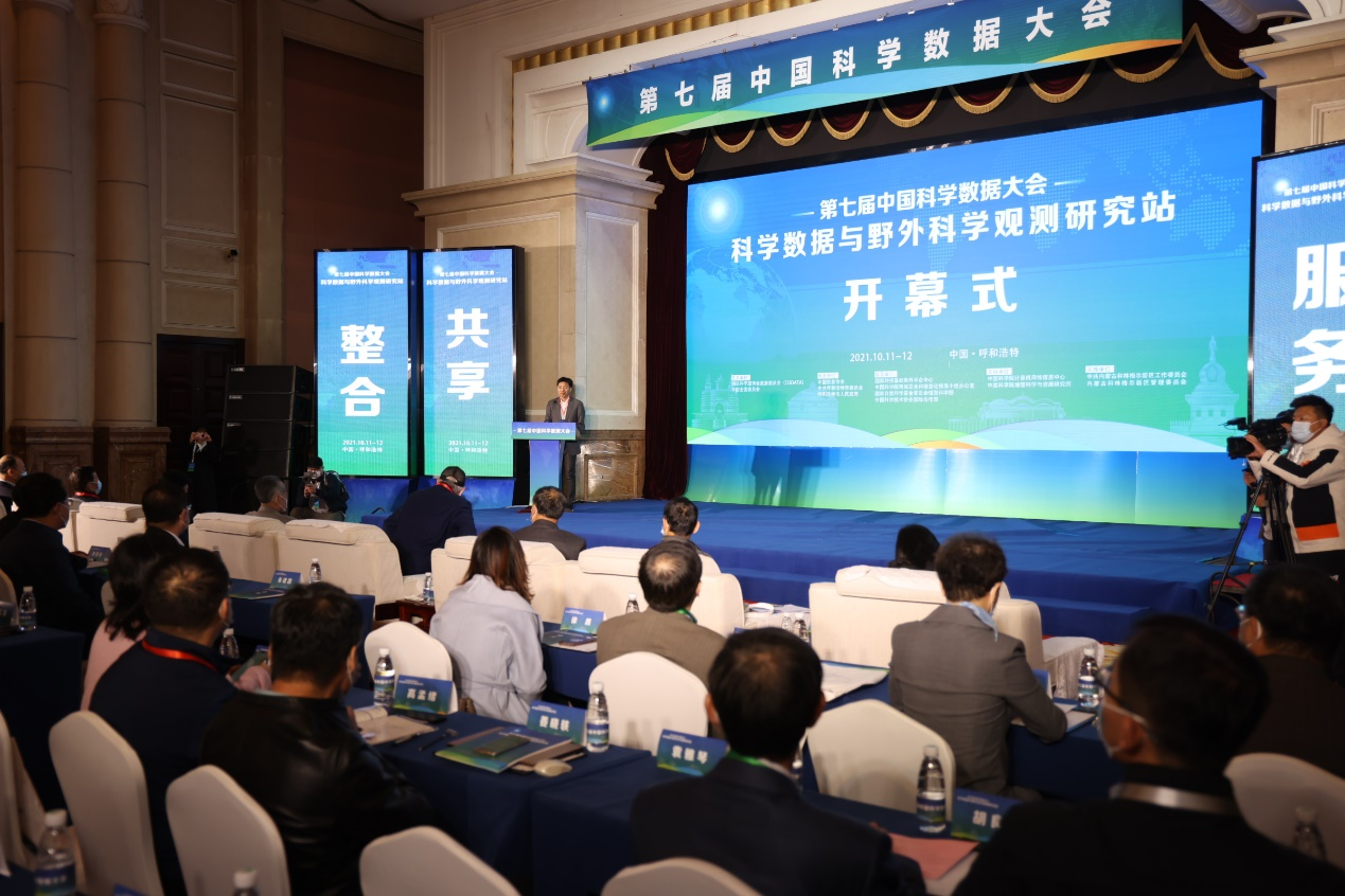 10月11日-12日,以“科學(xué)數(shù)據(jù)與野外科學(xué)觀測研究站”為主題的第七屆(2021)中國科學(xué)數(shù)據(jù)大會(huì)在內(nèi)蒙古呼和浩特市成功召開,會(huì)議由國際科學(xué)理事會(huì)數(shù)據(jù)委員會(huì)(CODATA)中國全國委員會(huì)主辦,國家科技基礎(chǔ)條件平臺(tái)中心、中國科學(xué)院網(wǎng)絡(luò)安全和信息化領(lǐng)導(dǎo)小組辦公室、國家自然科學(xué)基金委員會(huì)信息科學(xué)部、中國科學(xué)技術(shù)協(xié)會(huì)國際合作部共同指導(dǎo),中國信息協(xié)會(huì)、呼和浩特市人民政府承辦,中國科學(xué)院計(jì)算機(jī)網(wǎng)絡(luò)信息中心、中國科學(xué)院地理科學(xué)與資源研究所支持。中國科學(xué)院院士陳宜瑜、中國工程院院士張明高、中國工程院院士孫九林、中國科學(xué)院院士于貴瑞、國家科技基礎(chǔ)條件平臺(tái)中心主任蘇靖、中國科學(xué)院網(wǎng)信辦常務(wù)副主任王樹志、呼和浩特市市長賀海東及來自國內(nèi)各領(lǐng)域的領(lǐng)導(dǎo)嘉賓、專家學(xué)者、專業(yè)人士400余人參加會(huì)議。中國科學(xué)院計(jì)算機(jī)網(wǎng)絡(luò)信息中心副主任(主持工作)謝高崗主持大會(huì)開幕式。