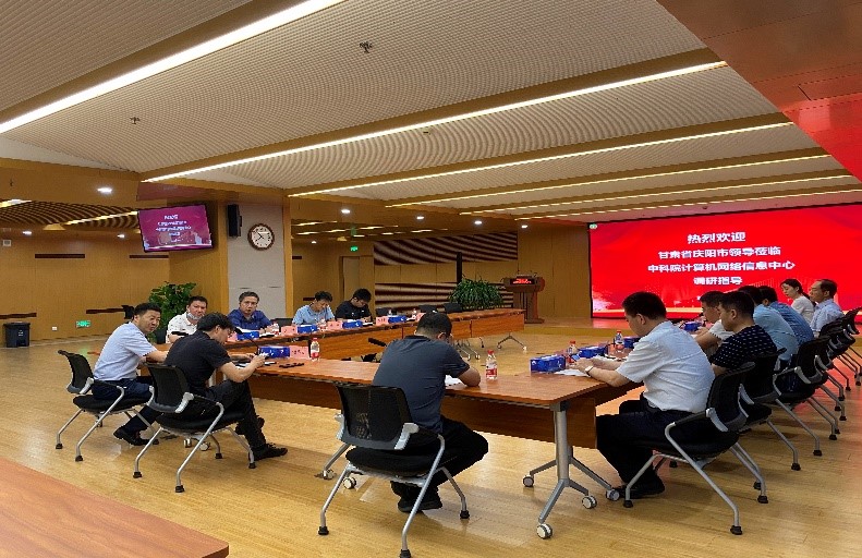 7月5日,甘肅省慶陽(yáng)市市委常委、常務(wù)副市長(zhǎng)董濤、副市長(zhǎng)吳寶定一行到中國(guó)科學(xué)院計(jì)算機(jī)網(wǎng)絡(luò)信息中心調(diào)研。中心副主任(主持工作)謝高崗帶隊(duì)出席調(diào)研會(huì)。