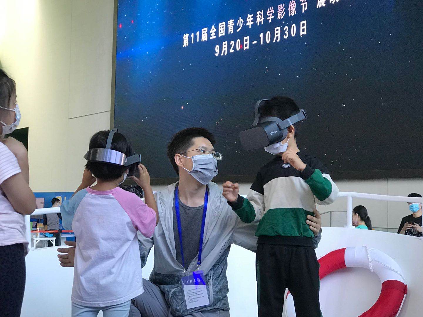 新媒體部李景龍輔導(dǎo)小朋友VR漫游“科學(xué)”號科考船