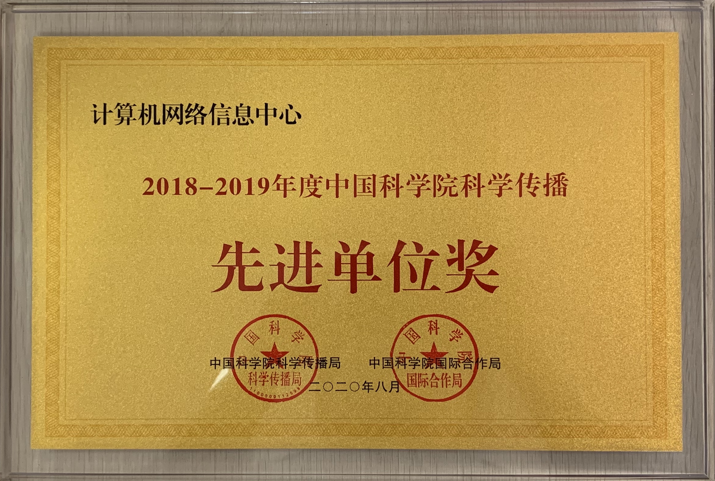 計算機網(wǎng)絡(luò)信息中心榮獲2018-2019年度“中國科學(xué)院科學(xué)傳播先進單位獎”和“中國科學(xué)院科學(xué)普及先進單位獎”