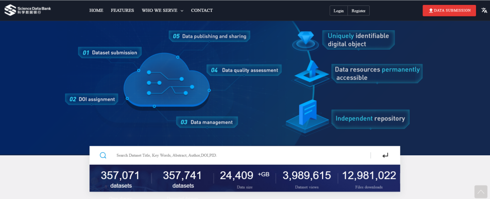科學(xué)數(shù)據(jù)銀行(Science Data Bank,簡稱ScienceDB)是中國科學(xué)院計算機(jī)網(wǎng)絡(luò)信息中心自主研發(fā)的致力于打造科學(xué)數(shù)據(jù)長期共享與出版的國際化通用存儲庫,面向國際學(xué)術(shù)界、學(xué)術(shù)期刊和出版商等提供數(shù)據(jù)出版和獲取服務(wù)。ScienceDB致力于出版符合主流數(shù)據(jù)標(biāo)準(zhǔn)或慣例的高質(zhì)量科學(xué)數(shù)據(jù),旨在促進(jìn)科學(xué)數(shù)據(jù)的可發(fā)現(xiàn)性、可訪問性、互操作性和可重用性(FAIR principle),提升科研數(shù)據(jù)成果的價值,積極開展與國際高端學(xué)術(shù)品牌的交流合作,推動我國數(shù)據(jù)共享文化氛圍的良性發(fā)展。