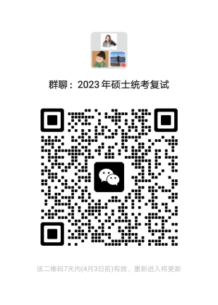 為便于考生咨詢,請(qǐng)進(jìn)入復(fù)試的考生掃描下方二維碼加入微信群,入群后及時(shí)將昵稱改為“考生編號(hào)后三位+姓名+學(xué)術(shù)型/專業(yè)型”,并注意及時(shí)查收郵件及中心碩士統(tǒng)考復(fù)試微信群消息,以便于接收后續(xù)相關(guān)通知。